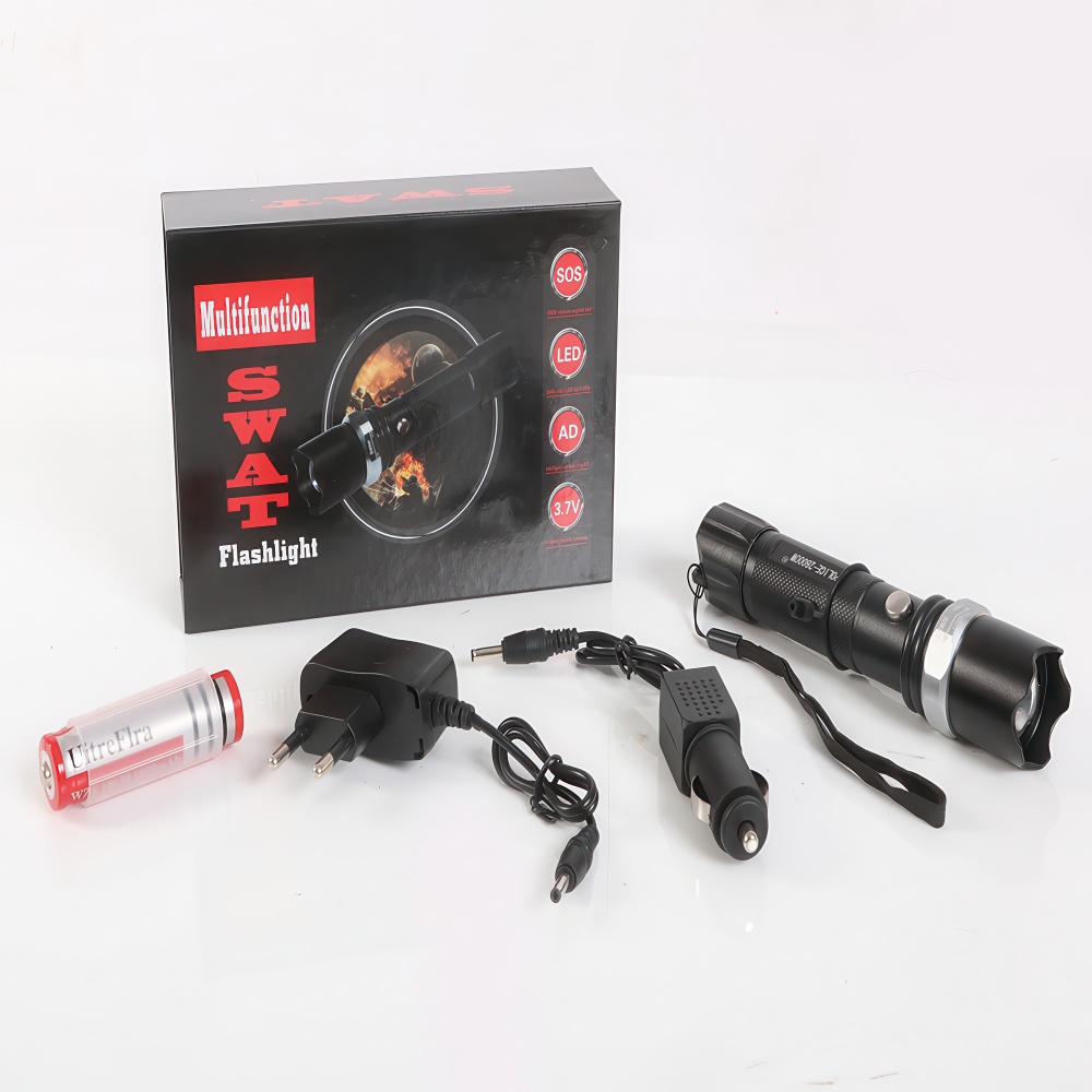 The SWAT Multifunction Flashlight is a high-performance tactical lighting solution designed for law enforcement and security professionals. Featuring multiple brightness settings, strobe functions, and a durable, weather-resistant construction, this flashlight is built to withstand demanding conditions. Its compact design allows for easy portability, while the robust grip ensures reliable handling in high-pressure situations. Whether for search and rescue operations or everyday use, the SWAT Multifunction Flashlight delivers exceptional illumination and versatility when it matters most.