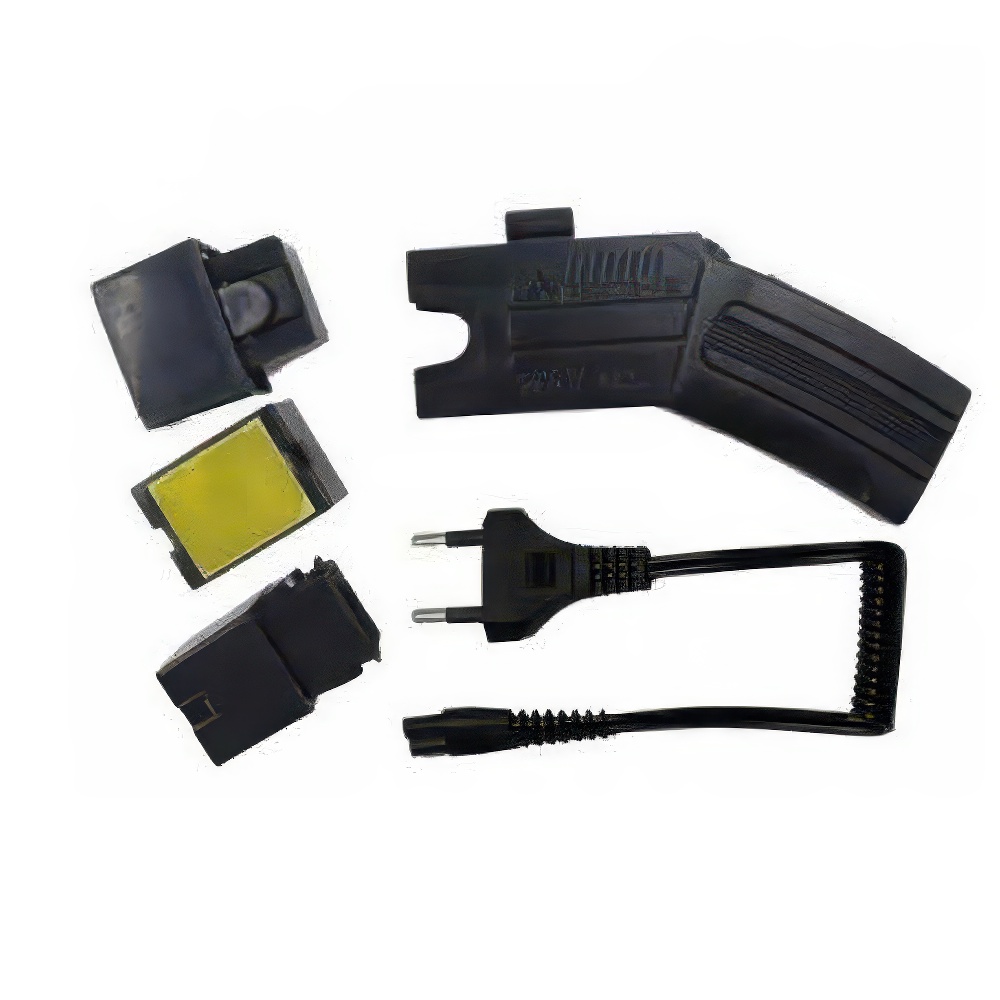 A high-voltage self-defense device designed to temporarily incapacitate threats from a safe distance. Features a trigger-activated electric charge, replaceable cartridges, and an ergonomic grip for secure handling. Ideal for personal safety and security professionals.