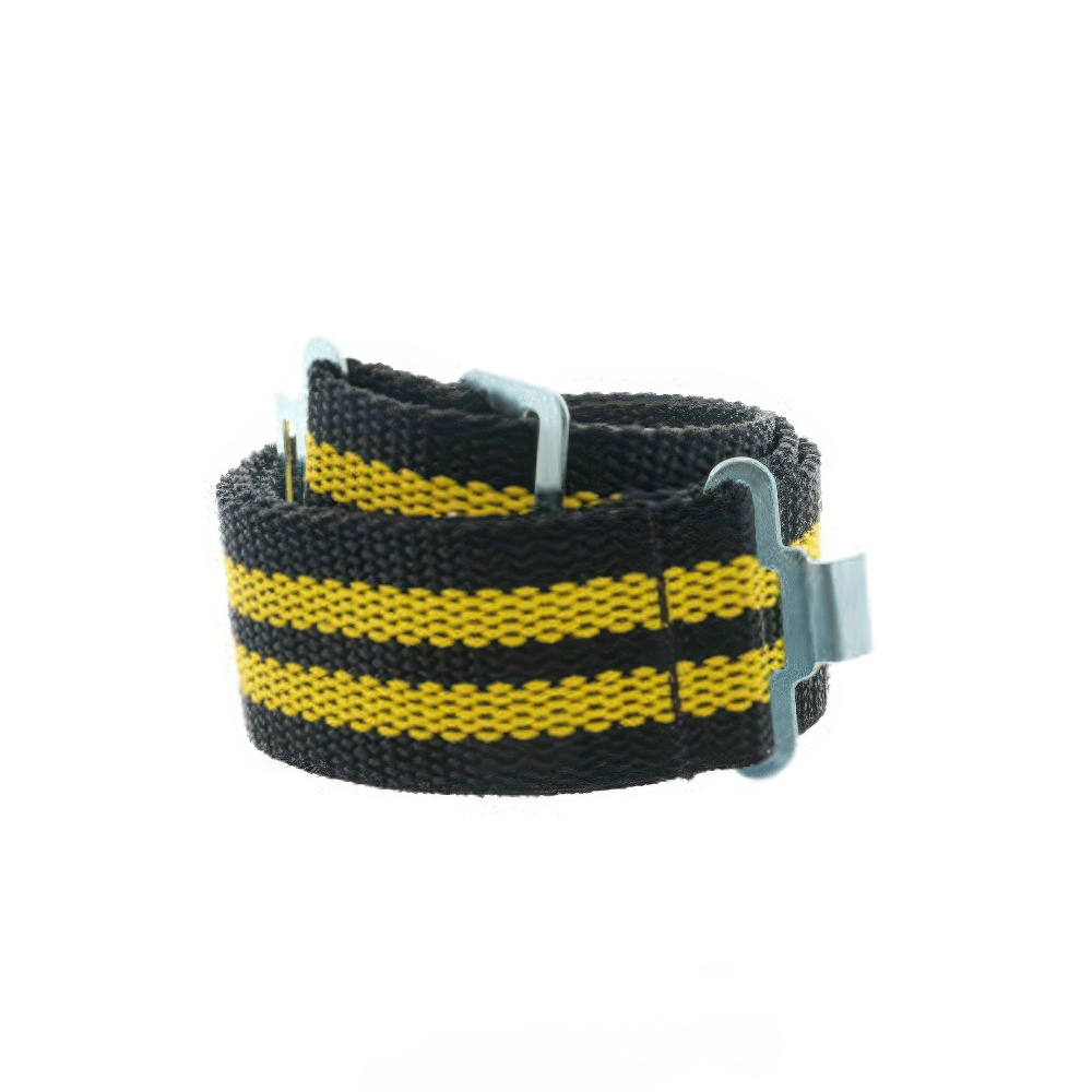 100% Nylon. Lightweight, quick drying, comfort nylon material strap with buckle suitable for security, outdoor sports (hiking, climbing mountains etc) or even daily wearing.
